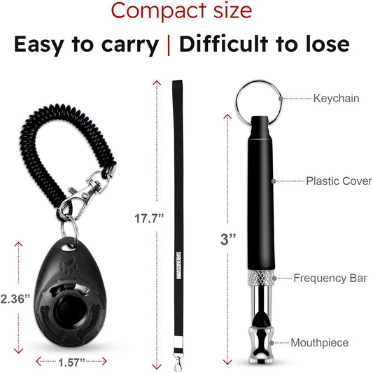 Pet Training Clicker & Whistle Set With Lanyard (3-Pack) - Adjustable Frequency Long-Range Behavior & Bark Control, Training Accessories for Dogs & Puppies