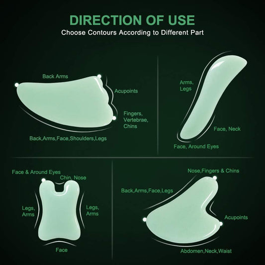4-Piece Natural Gua Sha Stone Set for Face & Body Sculpting, Lymphatic Drainage, Muscle Release & Skin Glow